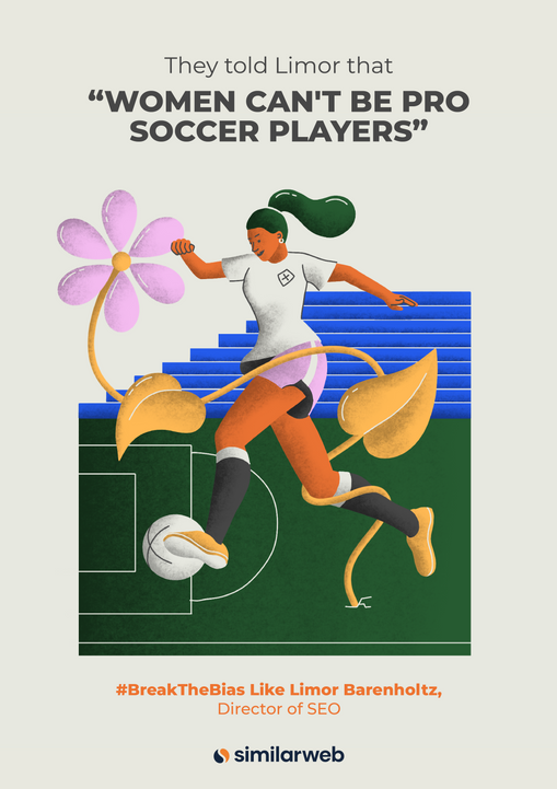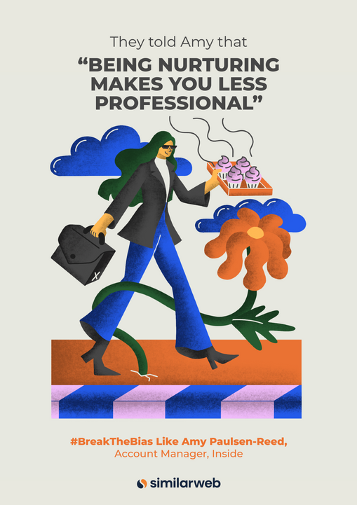 They asked women at Similarweb to share personal stories of how they had broken the bias in their own lives. I turned their stories into colorful posters, with the official symbol of #breakthebias, an X, hidden in every Illustration.